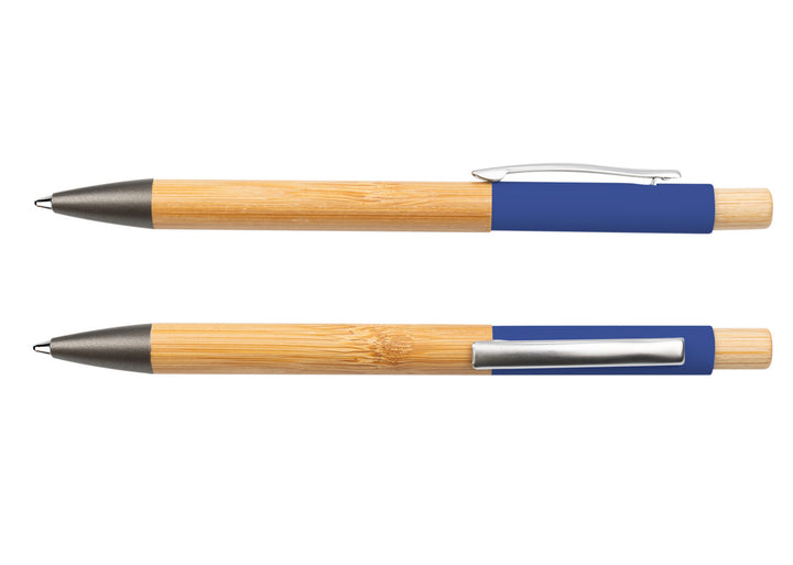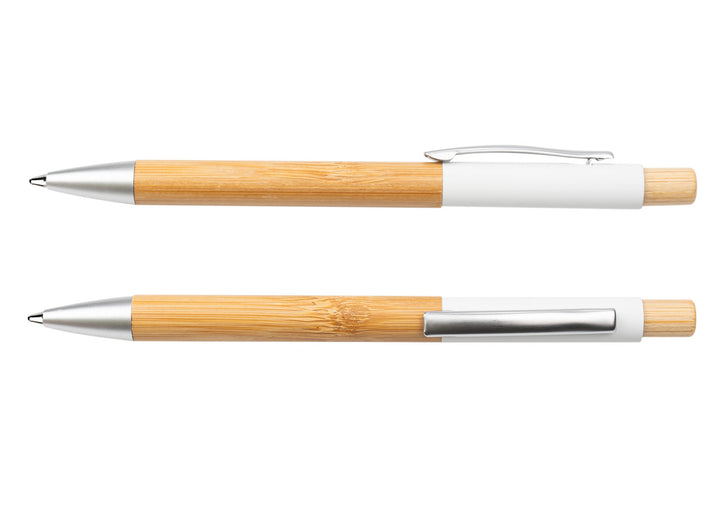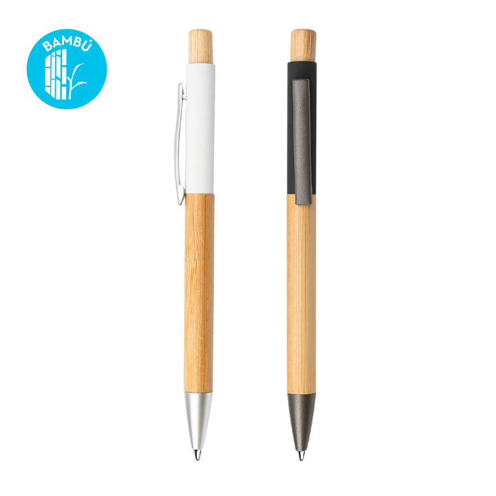 El ArborClick Alloy combina la calidez del bambú con la precisión del aluminio en un diseño ejecutivo y sostenible. Su mecanismo retráctil hace ágil el uso diario, mientras el clip y la punta metálicos aportan durabilidad y un contraste moderno. Ideal para kits de bienvenida y campañas con foco eco.