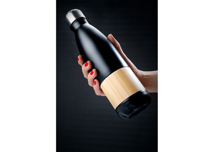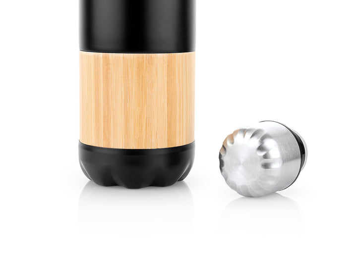 La BambooCore 500 combina acero inoxidable de alto desempeño con un aplique exterior de bambú natural que eleva la estética y refuerza credenciales eco. Su construcción de doble pared al vacío mantiene las bebidas calientes hasta 12 h y frías hasta 24 h, ideal para jornadas de oficina, viajes y actividades outdoor.