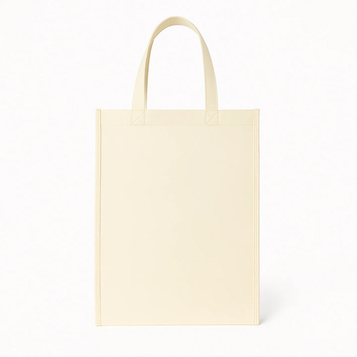 Bolsa ecológica en cambrel 70g con diseño vertical y fuelles laterales + base que permiten mayor volumen sin sacrificar comodidad. Su presentación elegante y funcional la convierte en una de las preferidas por marcas que buscan impactar en ferias, eventos o entregas corporativas.