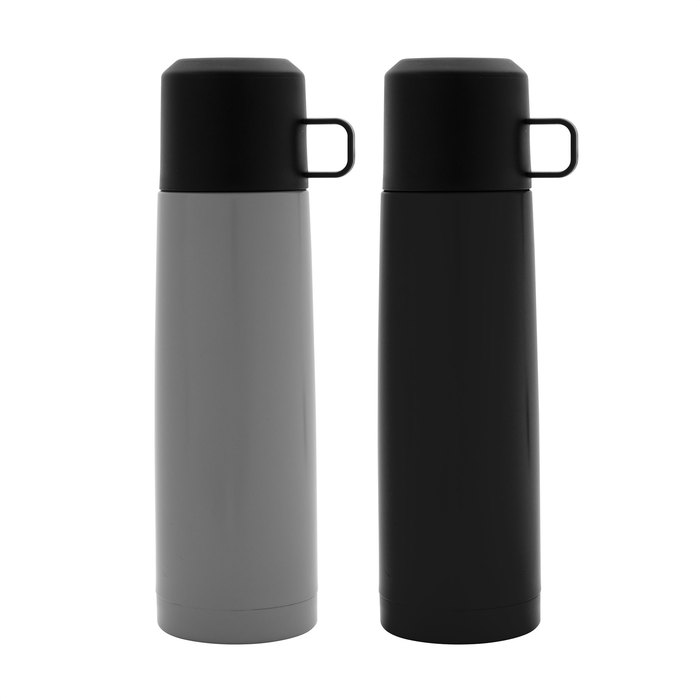 El CaféVacuum 500 está pensado para jornadas móviles y los adictos al café: doble pared sellada al vacío que conserva la temperatura, cuerpo de acero con acabado mate y taza con asa integrada para servir en cualquier lugar. Su tapa a rosca asegura el contenido y el diseño sobrio eleva la presentación en kits ejecutivos o de field sales.