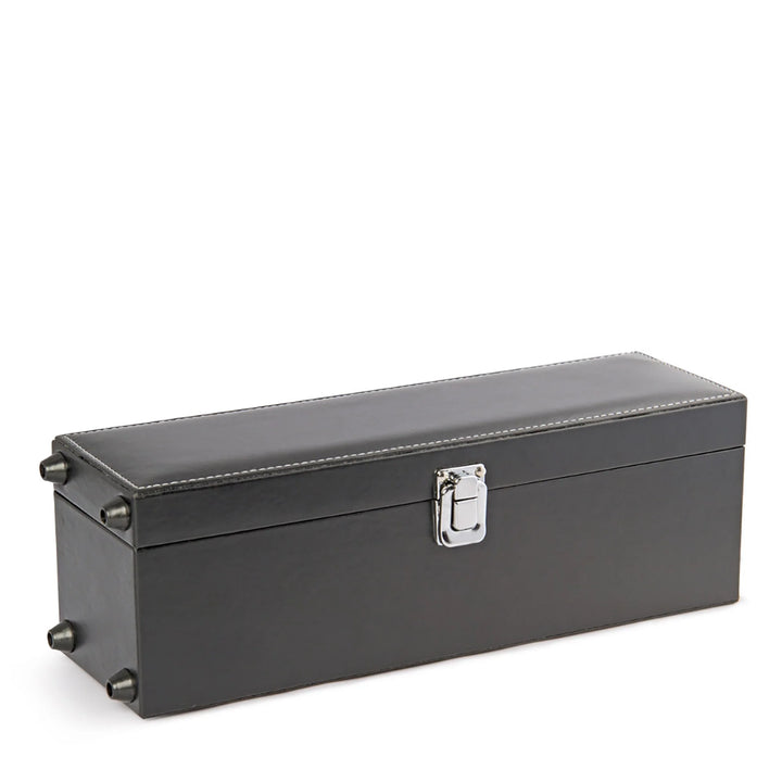 • Caja de madera forrada en PU de alta calidad • Accesorios con acabados en acero y detalles en madera • Incluye: Sacacorchos descapsulador de 1 tiempo, Cortagotas, Tapón metálico, Termómetro, Aro antigoteo • Área de impresión sugerida: 10 x 4 cm • Técnica recomendada: Grabado láser • Medidas: 35 x 11,8 x 10,3 cm