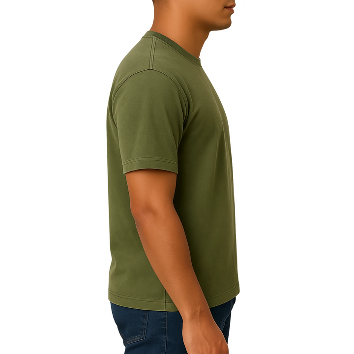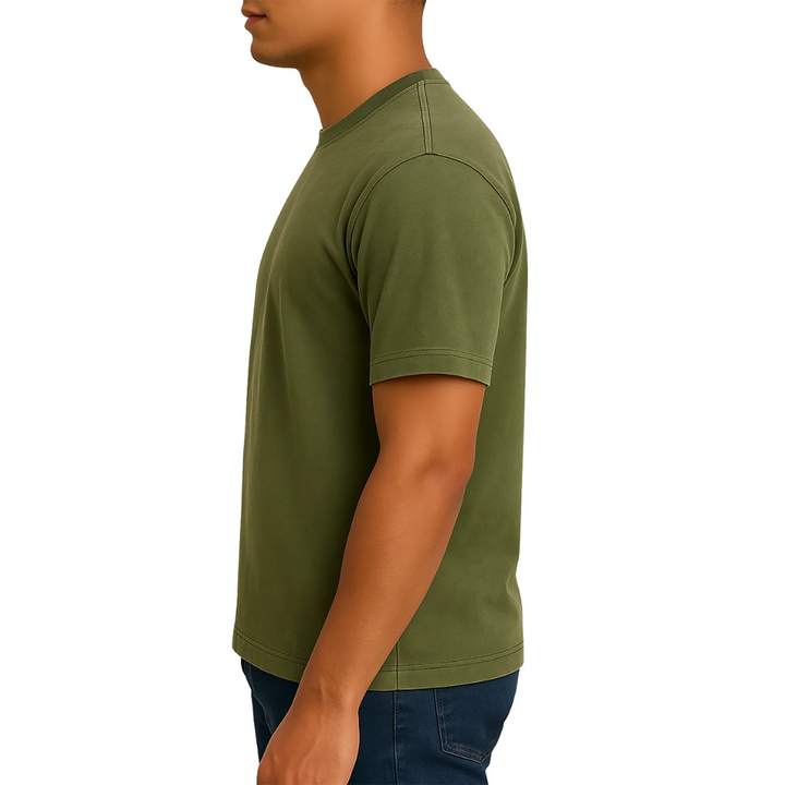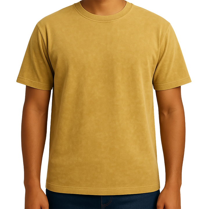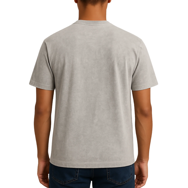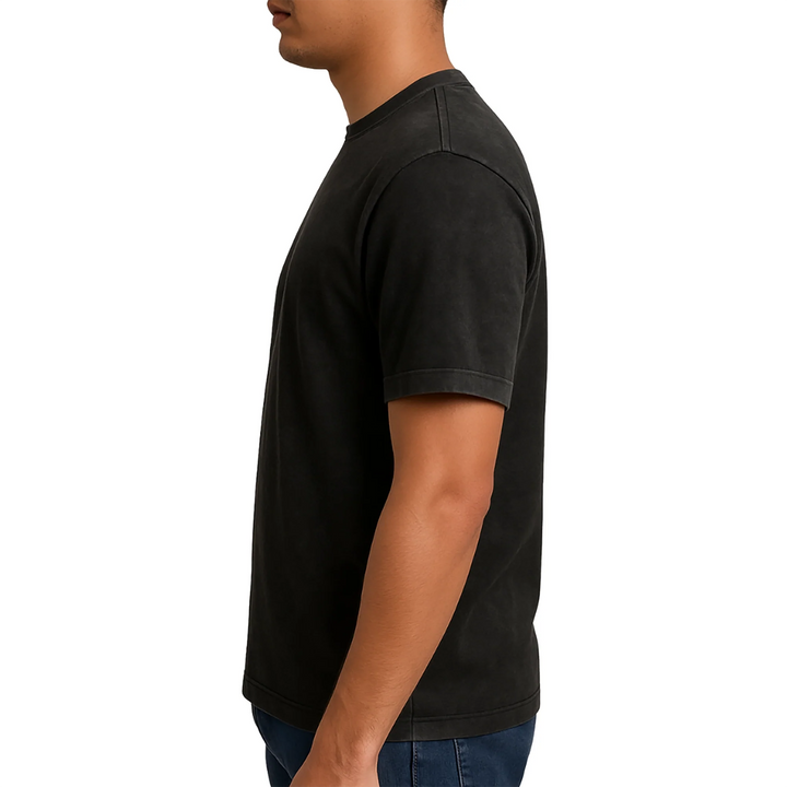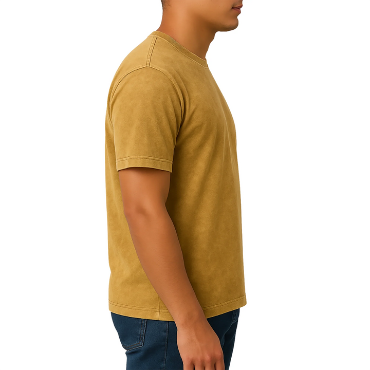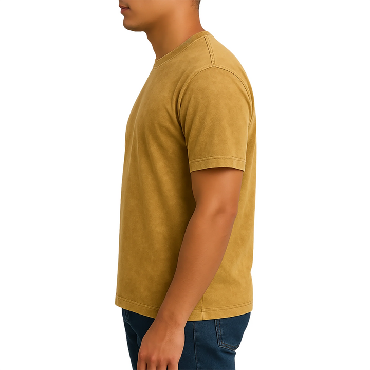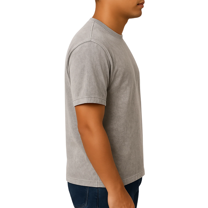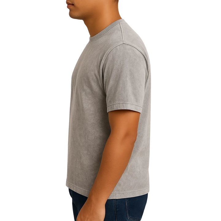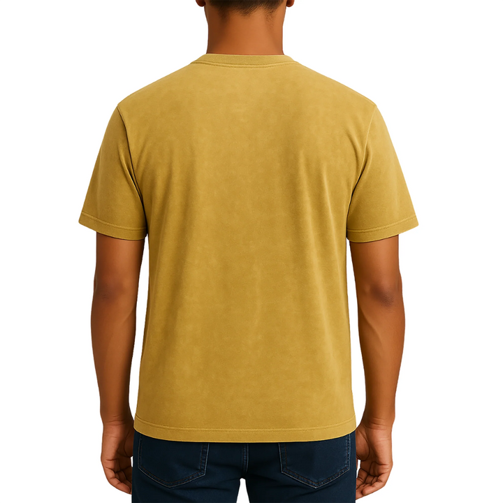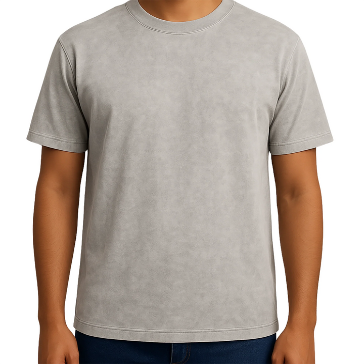 Camiseta regular fit con acabado tipo prelavado, fabricada en algodón 100% de 230 gramos. Su proceso de teñido genera un efecto visual único con variaciones tonales sutiles, ideal para marcas que buscan una estética casual, urbana o desgastada. La estructura gruesa y el diseño clásico permiten combinar estilo con durabilidad. Disponible en 6 colores con carácter.