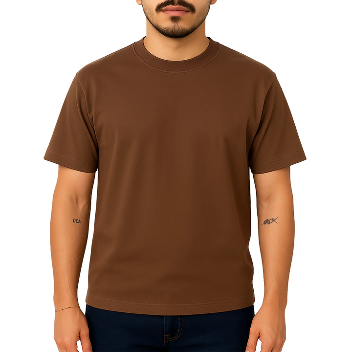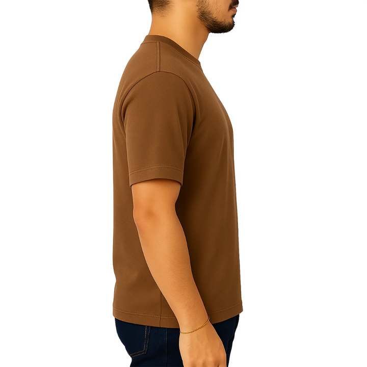 Camiseta de confección premium con cuello alto en rib (3 cm) y tela esmerilada, fabricada en algodón de 240 gramos. Diseñada para brindar una apariencia sólida y sofisticada sin sacrificar comodidad. Su ajuste regular fit, estructura firme y acabado suave la convierten en una prenda ideal para dotaciones de alto estándar, campañas de marca con impacto visual o líneas de colección con estética refinada. Disponible en 11 colores.