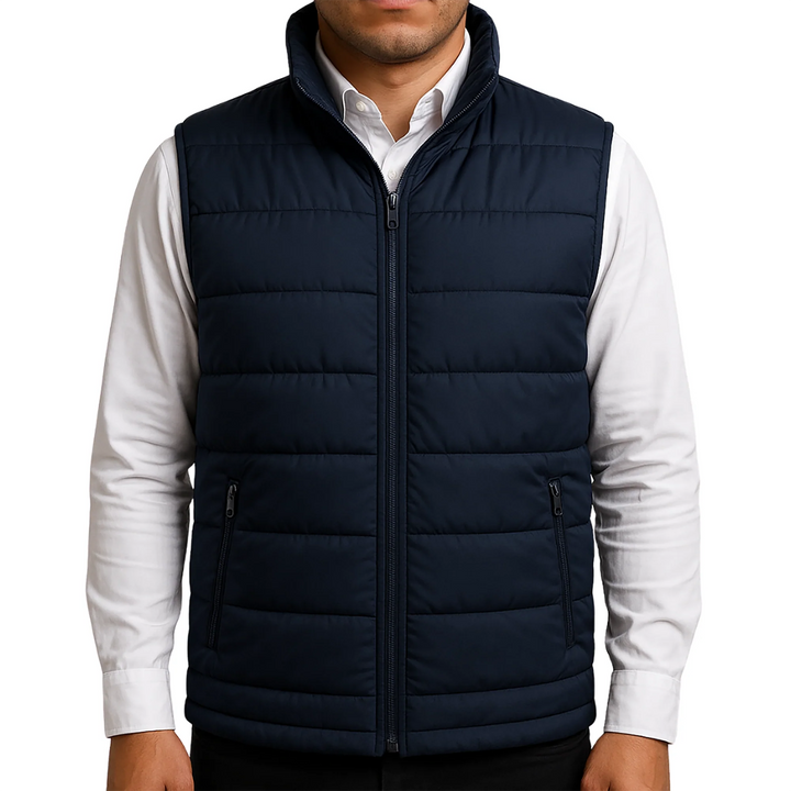 Chaleco liviano con estructura acolchada y corte recto, ideal para campañas promocionales, brigadas de campo, personal operativo o dotaciones institucionales con uso frecuente. Su superficie permite aplicar logotipos visibles por bordado y el diseño incluye bolsillos funcionales con cremalleras reforzadas. Ofrece protección ligera contra viento y salpicaduras, con repelencia al agua del 80%.