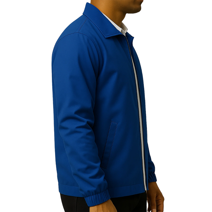 Chaqueta liviana tipo cortaviento diseñada para uso empresarial en climas variables. Su confección en poliéster técnico ofrece protección UV y un recubrimiento con repelencia al agua del 80%, lo que la convierte en una prenda funcional para trabajo de campo, dotaciones institucionales o equipos de atención al cliente. Cuenta con bolsillos frontales con cremalleras reforzadas, puños resortados y diseño diferenciado para hombre y mujer. Ideal para uniformes de media estación, activaciones de marca o kits de dotación ejecutiva. Apta para bordado institucional en área frontal.
