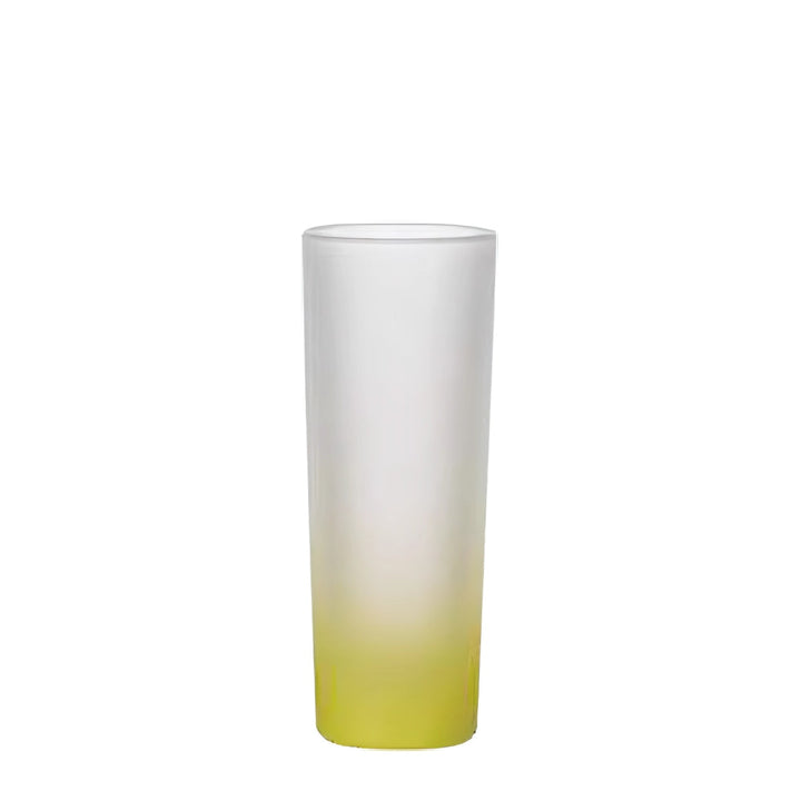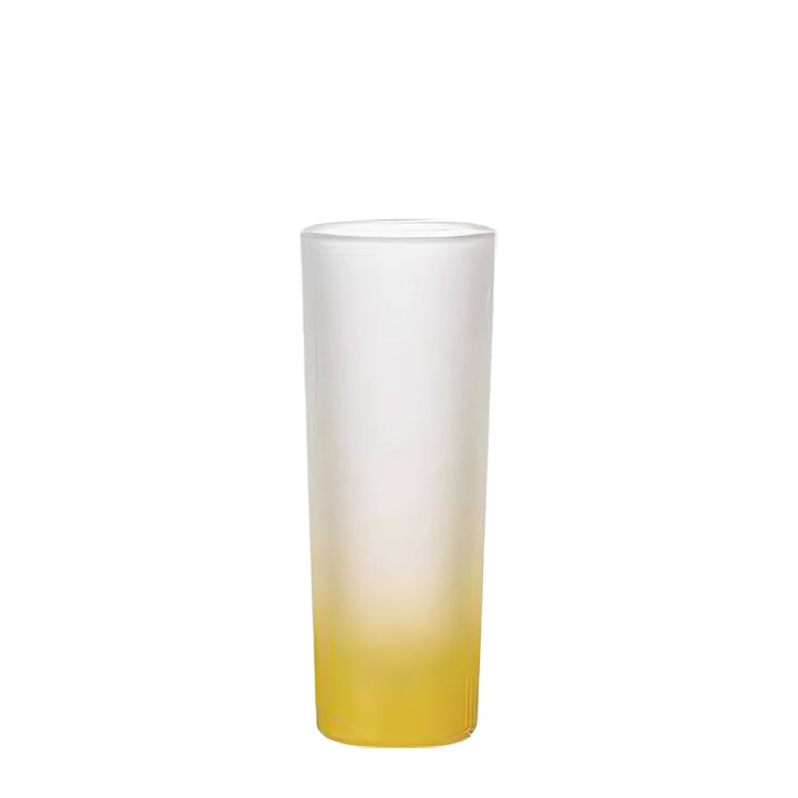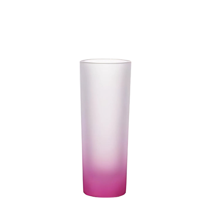 Copa de vidrio sublimable de 3 onzas con diseño alargado y acabado translúcido. Disponible en vibrantes fondos degradados neón (rosado, rojo, azul, morado, amarillo, verde y naranja), ideales para crear experiencias visuales impactantes en activaciones, eventos temáticos o regalos personalizados.