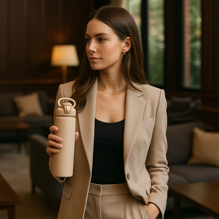 • Capacidad: 700 ml • Tapa argolla con seguro y anillo de agarre integrado • Acabado sólido en tonos sobrios y modernos • Ideal para campañas internas, wellness y programas de fidelización • Apto para marcación por tampografía o vinilo • Colores disponibles: rosa pastel, azul claro, verde oliva, nude • Fabricación nacional con estándares sostenibles