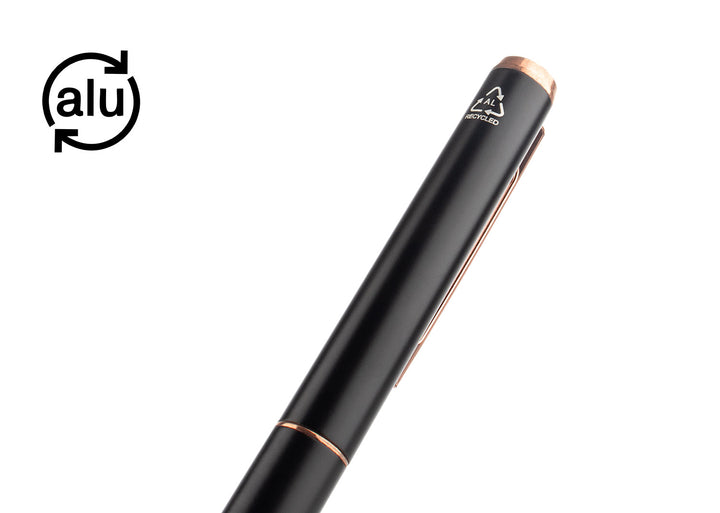 Material: PU reciclado (cubierta) + aluminio reciclado (bolígrafo)