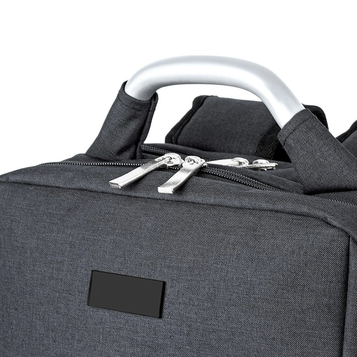 Morral corporativo de perfil delgado y elegante, diseñado con agarradera superior en aluminio y estructura interna compartimentada. Cuenta con doble bolsillo frontal con cremallera, compartimento acolchado con velcro para portátiles de hasta 14” y segundo compartimento con organizador interno para libreta, bolígrafo o documentos. Su diseño minimalista, junto con la placa metálica incluida para grabado láser, lo convierten en una opción ideal para dotaciones premium, regalos institucionales o programas de fidelización de alto nivel.