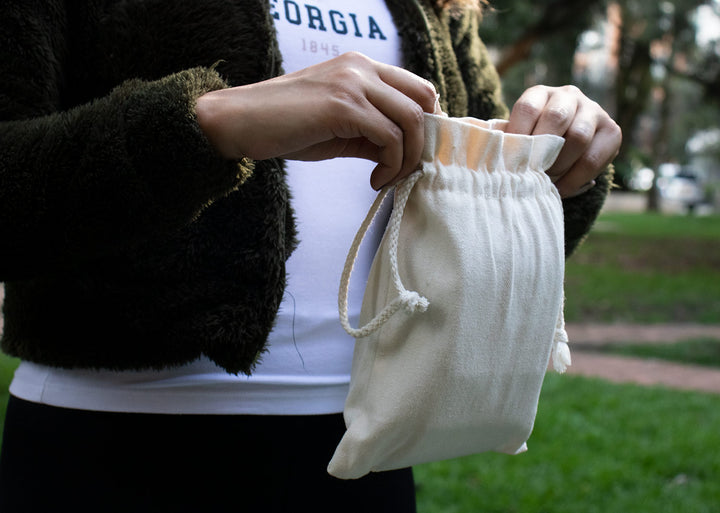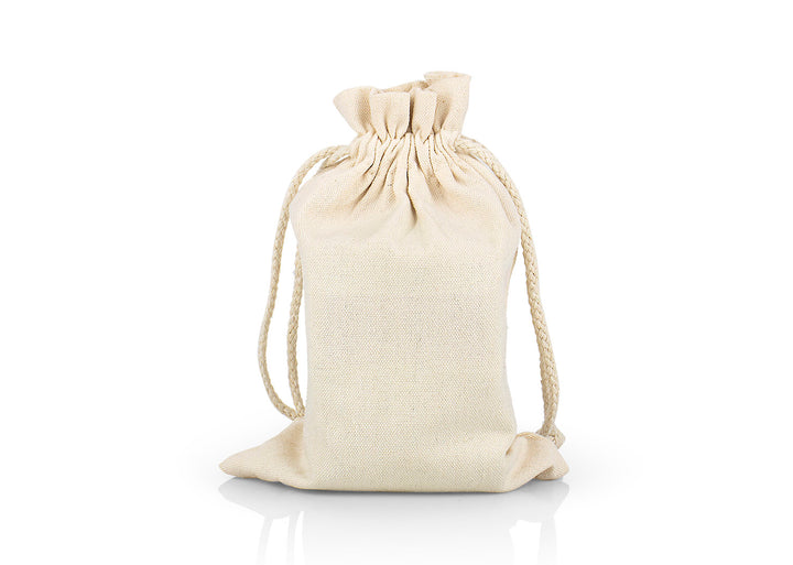 Cada set viene en un estuche de algodón personalizable, práctico y sostenible, que permite imprimir logotipos o mensajes corporativos en un área de hasta 9 × 9 cm.