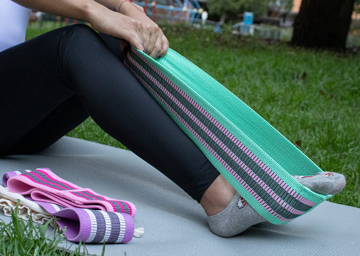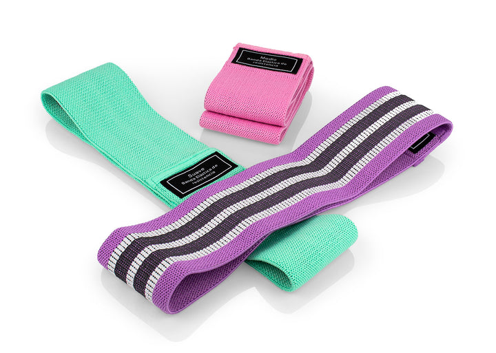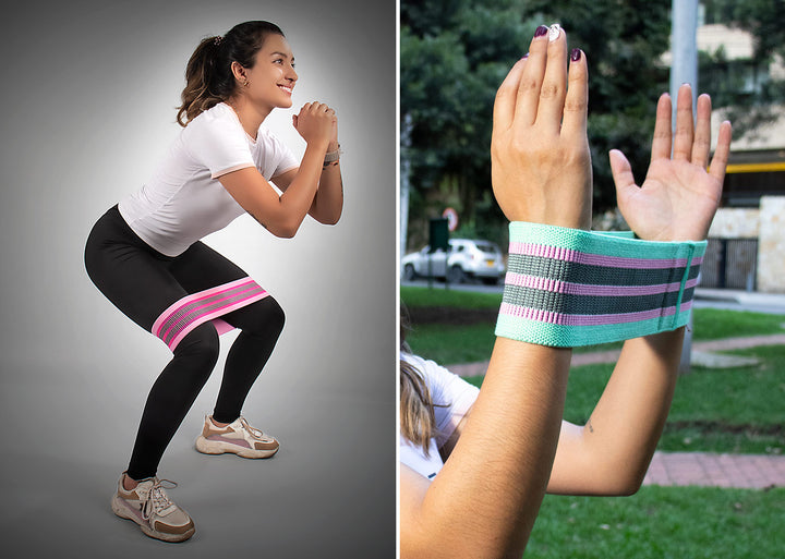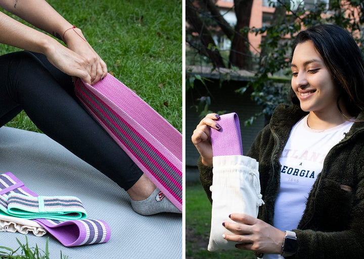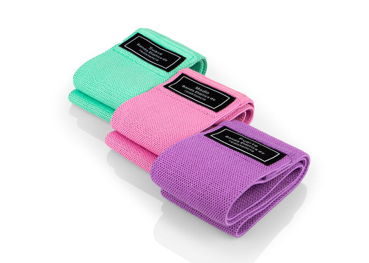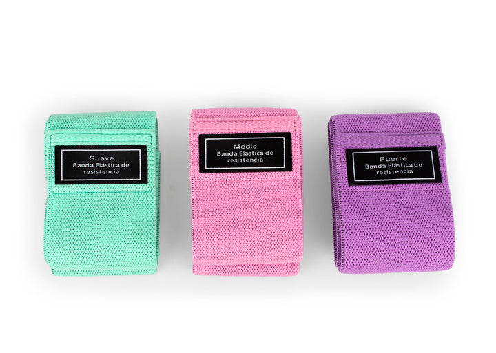 Incluye: Set de 3 bandas elásticas con niveles de resistencia (Suave, Medio, Fuerte)