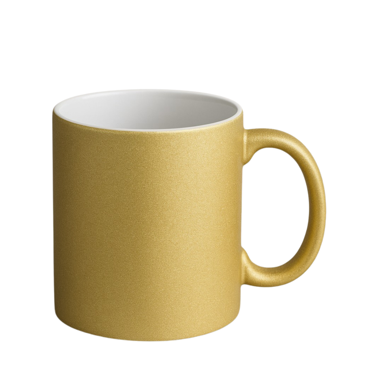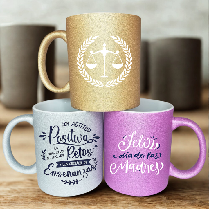 • Capacidad: 11 oz (325 ml) • Material: cerámica sublimable con recubrimiento escarchado • Acabados disponibles: plateado, dorado, rosado, cobre • Medidas: 8,2 cm diámetro × 9,5 cm alto • Acabado brillante tipo glitter que realza el diseño • Ideal para celebraciones corporativas, aniversarios, lanzamientos o branding emocional