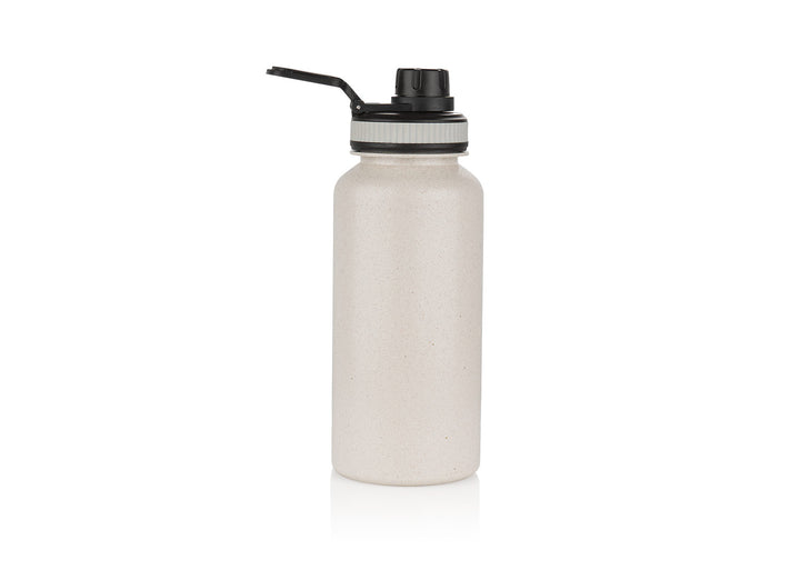 La GrainFlow 1150 lleva hidratación sostenible a gran escala. Fabricada en paja de trigo con tapa PP, ofrece un cuerpo ligero y resistente con boquilla de fácil acceso para beber en movimiento. Su acabado natural comunica valores eco sin perder practicidad para uso diario.