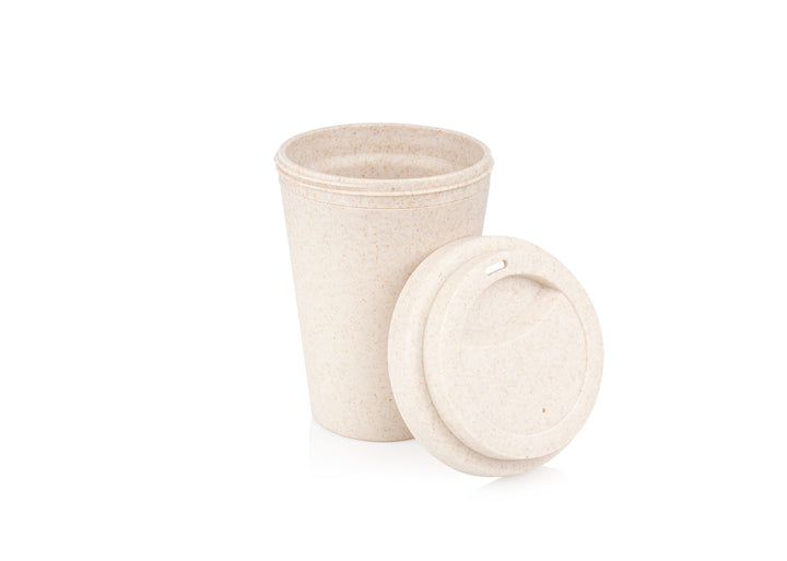El GrainTwist 350 es un vaso reutilizable fabricado en paja de trigo que reduce el uso de plásticos convencionales sin sacrificar practicidad. Su textura natural y tono beige proyectan una estética eco ideal para oficinas, cafeterías corporativas y eventos sostenibles.