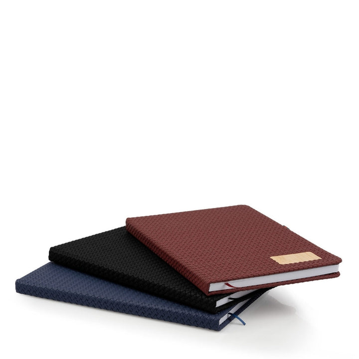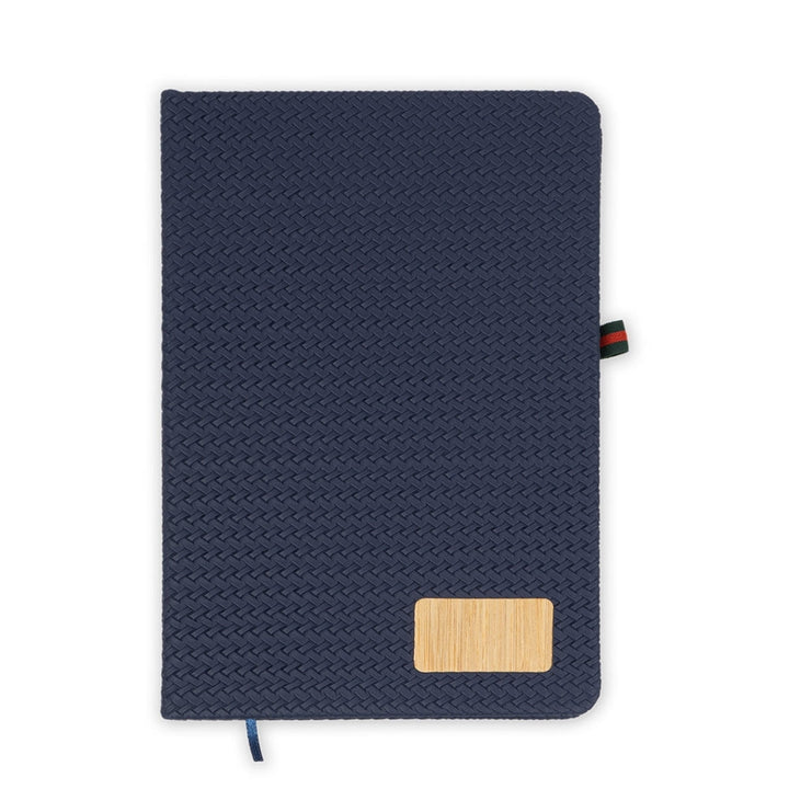 Libreta corporativa tamaño A5 con cubierta textil trenzada y placa frontal de bambú natural para impresión láser o tampografía. Ideal para campañas de branding sostenible, ferias empresariales o kits de bienvenida. Incluye 80 hojas rayadas, cinta marcadora y porta esfero. Disponible en colores sobrios como negro, rojo y azul rey. Su textura diferenciada aporta elegancia sin perder funcionalidad.