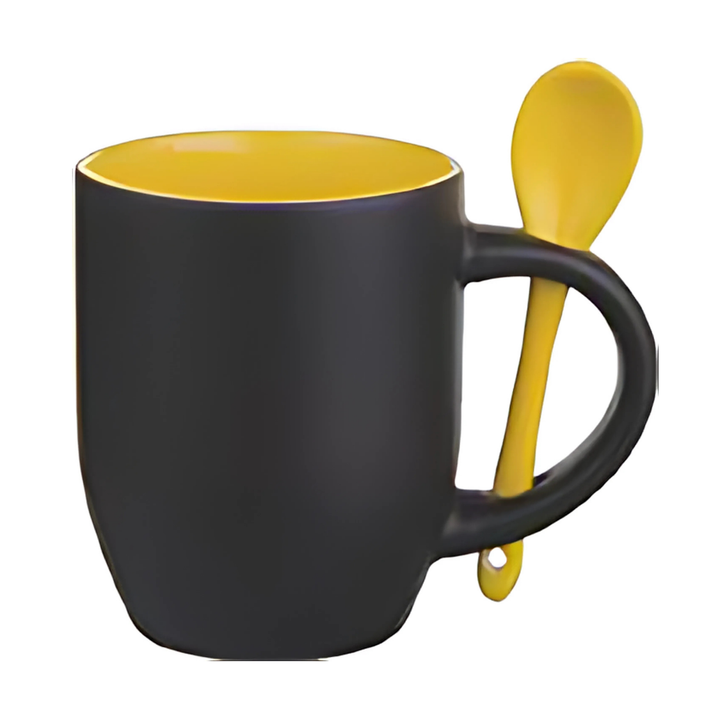 Mug de cerámica de 12 oz con recubrimiento termosensible que revela el diseño sublimado al contacto con bebidas calientes. Incluye cuchara del mismo color del interior, encajada en el asa para mayor practicidad. Su efecto visual y funcional lo hace ideal para campañas creativas, regalos corporativos o kits institucionales con un toque diferencial.