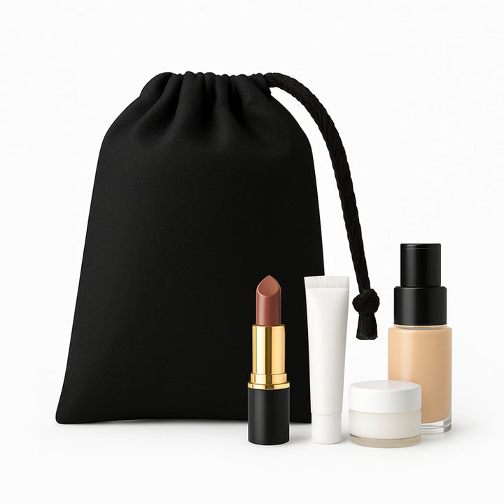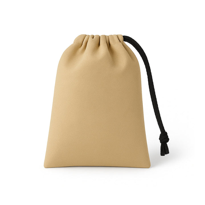Gracias a su cierre de cordón superior, esta bolsa mantiene el contenido seguro y accesible, perfecta para empaques de cosméticos, muestras o artículos promocionales.