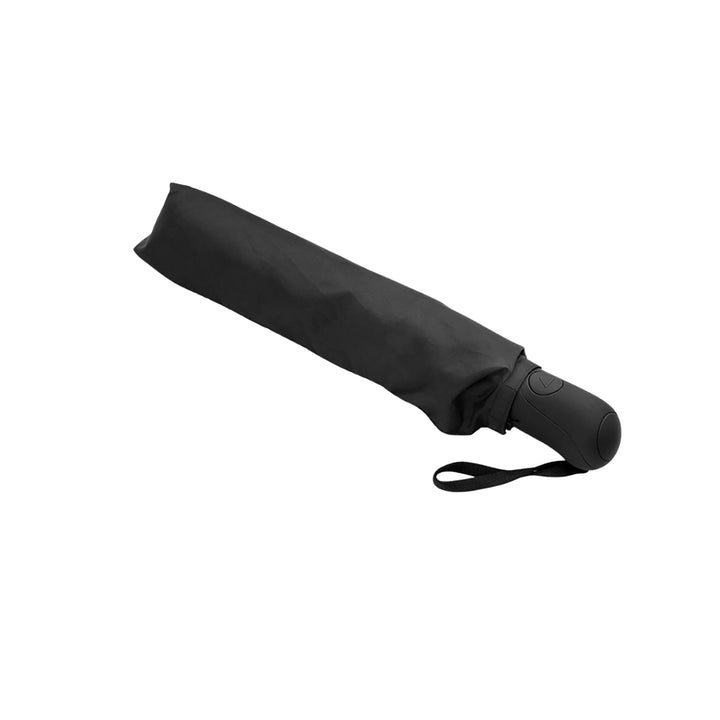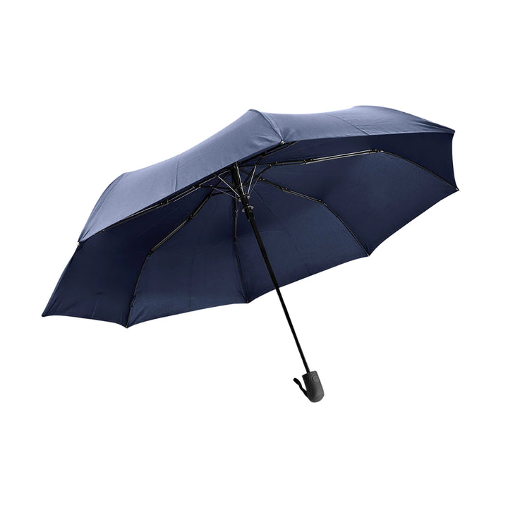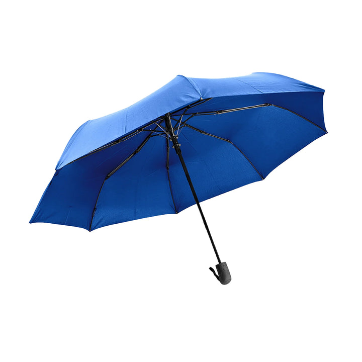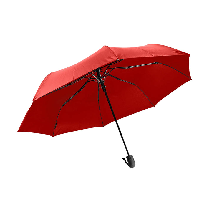 Paraguas personal de 23 pulgadas con estructura reforzada y sistema antiviento, diseñado para entornos urbanos exigentes o campañas donde la funcionalidad y el acabado ejecutivo son prioridad. Cuenta con apertura automática, cierre manual y mango en goma para mejor agarre. Fabricado en tela técnica 190T pongee y costillas en fibra de vidrio, ofrece resistencia comprobada al viento. Su diseño de 3 secciones permite un plegado compacto sin sacrificar cobertura. Incluye funda del mismo color, ideal para uniformes de alto perfil o entregas premium con logo visible.