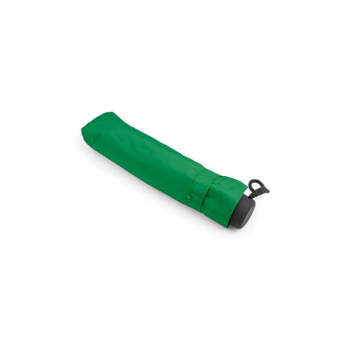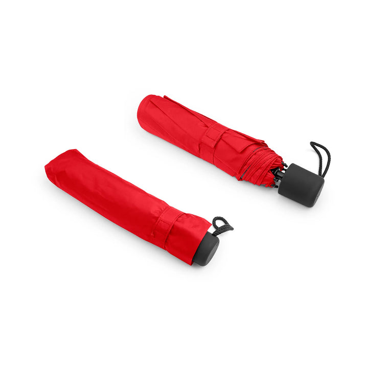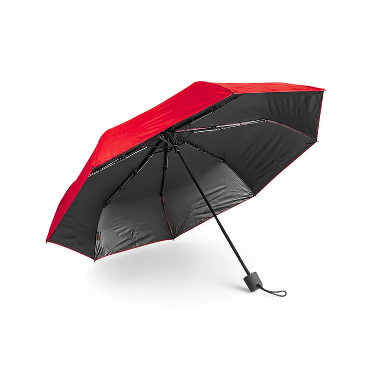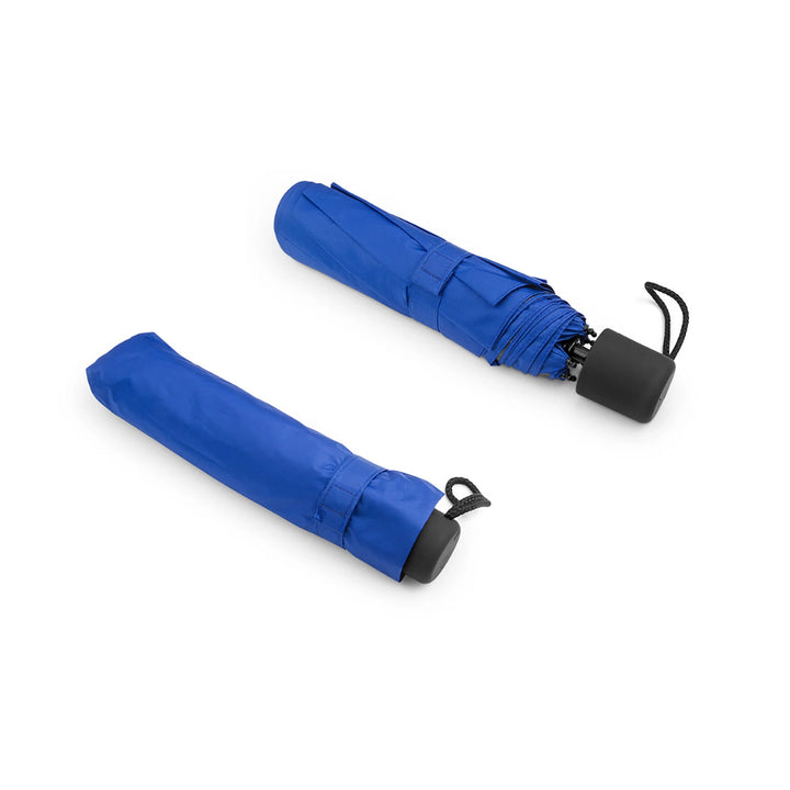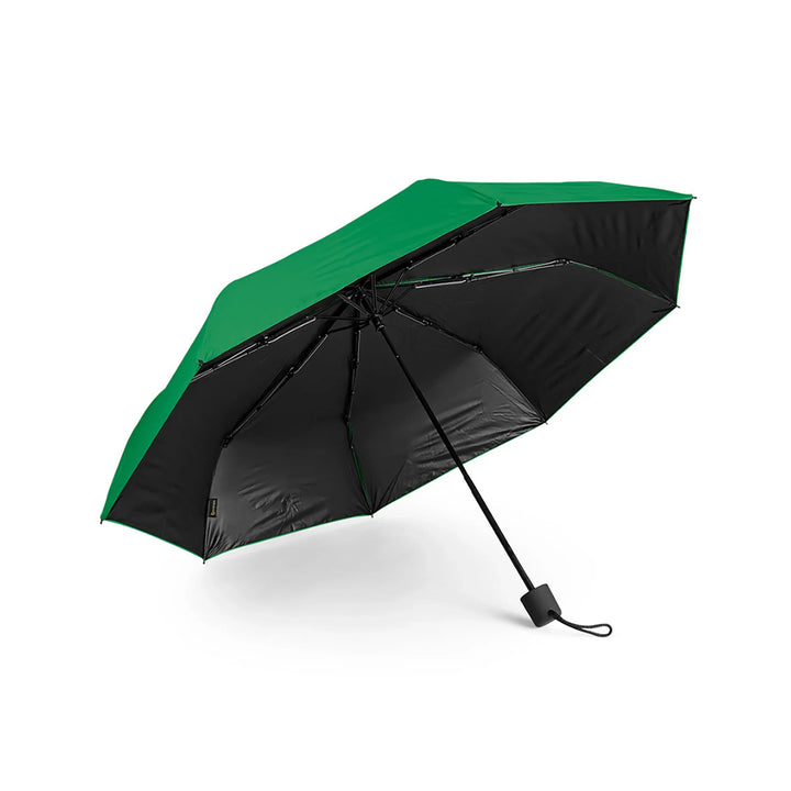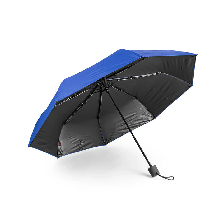 Paraguas de 21 pulgadas con estructura en 3 secciones plegables y sistema windproof que refuerza su resistencia frente al viento. Su cobertura de 8 costillas en 190T pongee con recubrimiento interior negro proporciona protección UV y una estética más sobria. Apertura y cierre manual, con mango plástico recubierto en goma para mayor comodidad. Incluye funda del mismo color para facilitar transporte. Ideal para programas corporativos de alto uso, kits ejecutivos o campañas con enfoque técnico.
