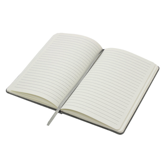 La Releaf Note fusiona elegancia ejecutiva con compromiso ambiental. Fabricada con tapa de cartón de 300 g recubierta en RPET 310, esta libreta A5 ofrece una textura textil moderna y resistente, ideal para uso corporativo diario o como parte de programas de sostenibilidad empresarial.