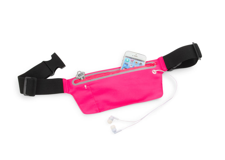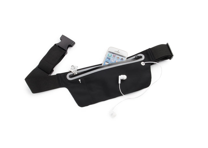 La correa ajustable a la cintura con hebilla de liberación rápida asegura un calce estable. Incluye pasador para audífonos para escuchar música sin abrir el compartimento. Ideal para running, ciclismo, festivales y activaciones deportivas.