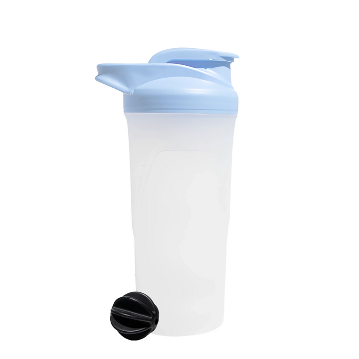 • Capacidad: 700 ml • Incluye esfera mezcladora para disolución uniforme • Tapa con boquilla segura y cierre hermético • Diseño ergonómico con cuerpo translúcido • Tapa disponible en colores pastel: rosado, azul, gris (según disponibilidad) • Superficie frontal apta para marcación • Ideal para programas de salud, fidelización o kits corporativos wellness • Fabricación nacional