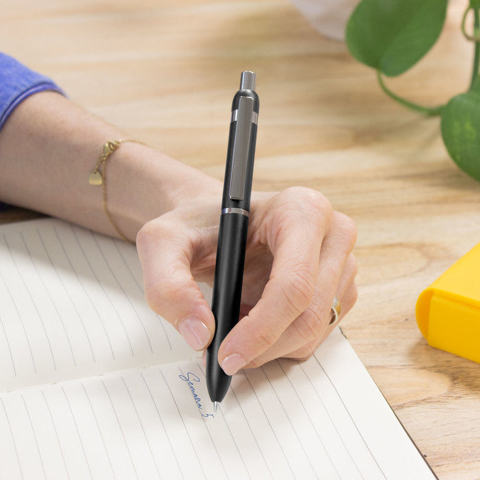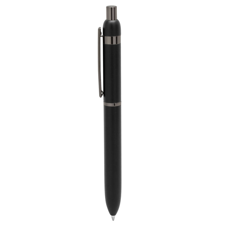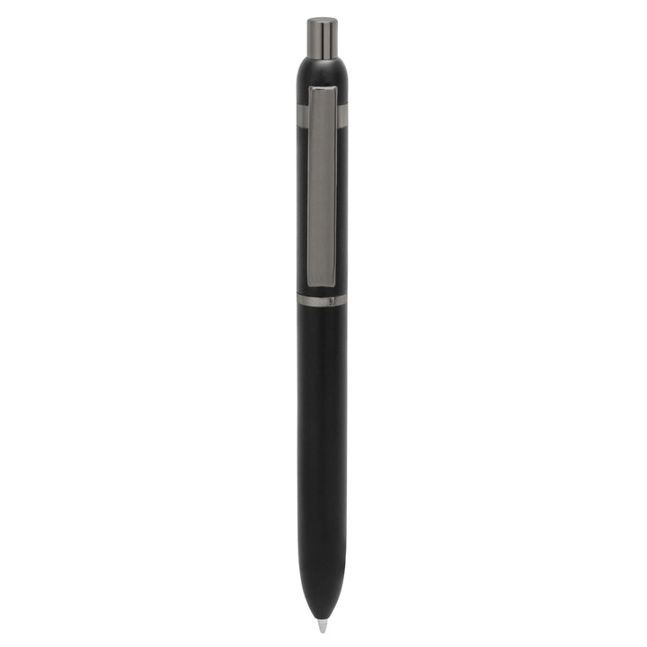 El Silverline Magnet es un bolígrafo retráctil de aluminio con detalles electroplateados que elevan la presencia en reuniones y obsequios ejecutivos. Incorpora clip, botón y anillos color plata, ofreciendo resistencia y un contraste elegante sobre el cuerpo mate. Su tinta negra fluye de forma uniforme para firmas y escritura continua.