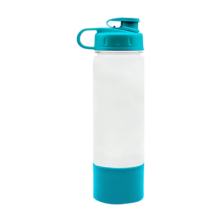 Termo deportivo de 500 ml con cuerpo transparente en plástico PET y tapa macro con asa integrada. Su diseño sencillo y funcional lo hace ideal para entregas promocionales, kits básicos de bienestar o campañas de hidratación corporativa. Cuenta con base de soporte inferior que brinda mayor estabilidad al posarlo. Este modelo no es apto para líquidos calientes. Fabricado en material plástico PET sin sello de BPA Free.