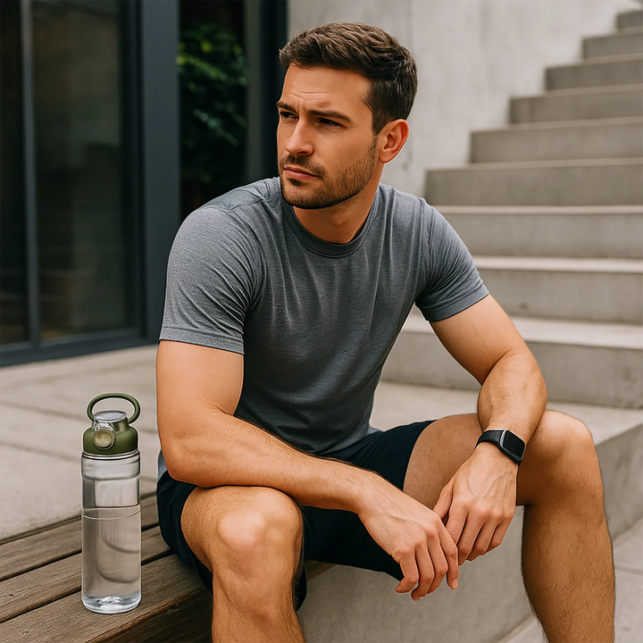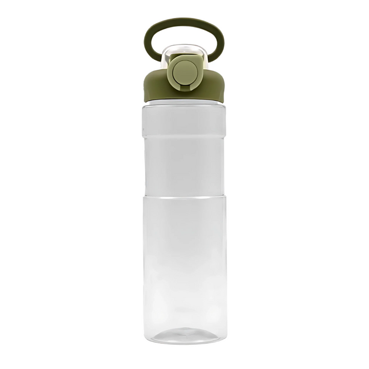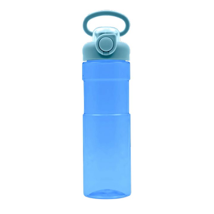 Botilito de 760 ml fabricado en Tritán, un material libre de BPA conocido por su resistencia térmica y durabilidad. Su diseño cilíndrico de doble sección aporta una estética moderna y permite una mayor visibilidad del contenido. Incluye tapa argolla de cierre abatible con anillo de transporte. Ideal para programas de fidelización, dotaciones ejecutivas o campañas de sostenibilidad corporativa. El cuerpo transparente permite apreciar el líquido, y su superficie es apta para marcación mediante estampado.