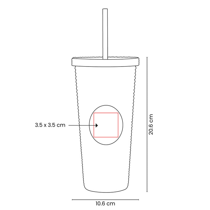 El Tumbler DiamondGrip 665 ml es un vaso de doble pared en plástico con textura tipo diamante y acabado rubber suave al tacto para mejor agarre. Trae tapa de rosca y popote incluido, ideal para uso diario en oficinas, eventos y programas wellness.