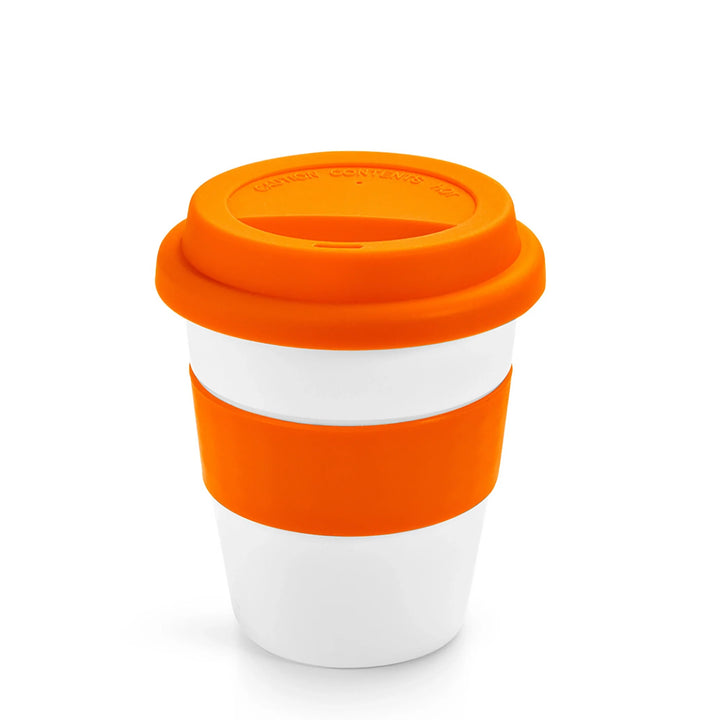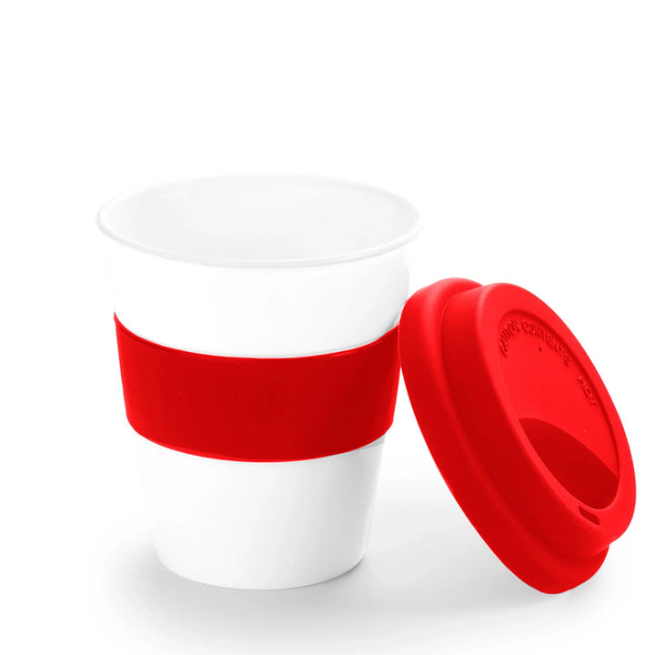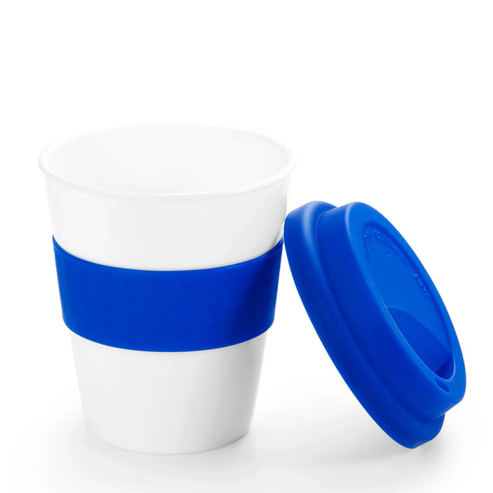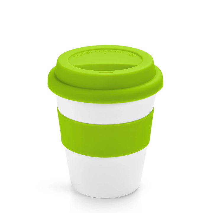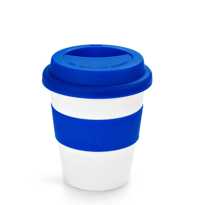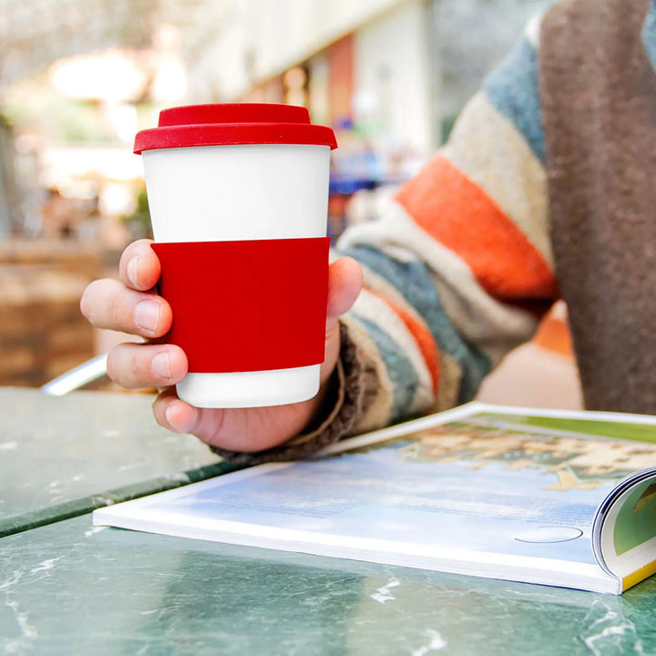 Vaso reutilizable de 356 ml fabricado en polipropileno (PP) libre de BPA, ftalatos u otras sustancias nocivas. Cuenta con tapa y grip en silicona para mejor agarre térmico y comodidad al tomar bebidas calientes. No transmite ni retiene olores ni sabores. Compatible con la mayoría de portavasos de vehículo. Ideal para campañas de sostenibilidad, dotaciones de oficina o giveaways ecológicos. Apto para tampografía sobre grip o superficie plástica.