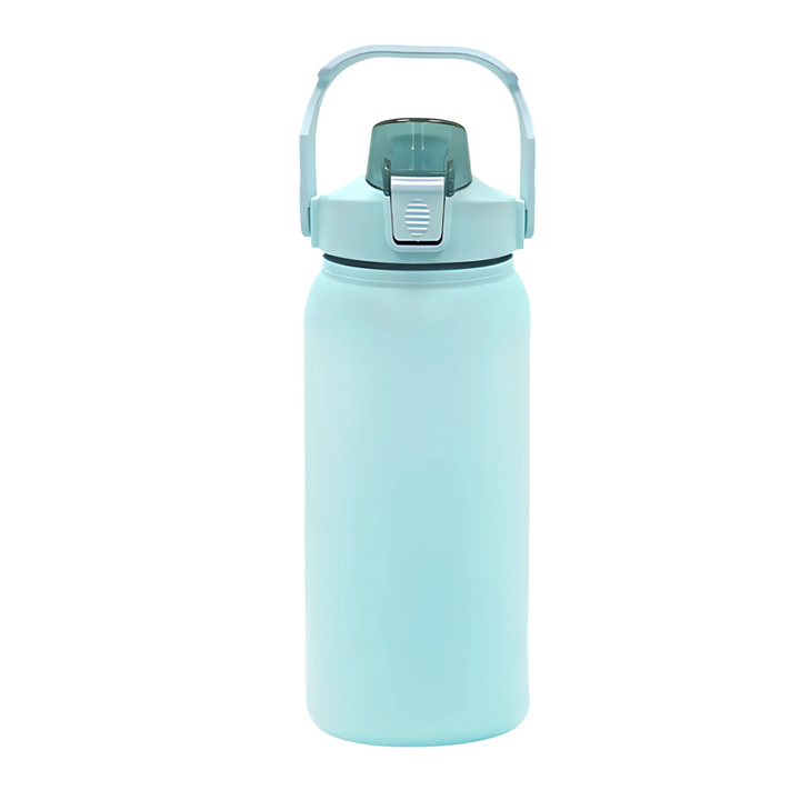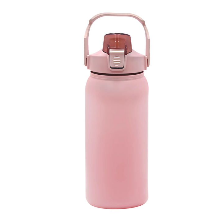 Botilito de 2000 ml con cuerpo opaco, diseño ergonómico y tapa XL con boquilla abatible, broche frontal y asa superior para fácil transporte. Fabricado en PET certificado BPA Free, este modelo ofrece una experiencia práctica y visualmente moderna, ideal para jornadas largas de trabajo, programas de bienestar o dotaciones de alto valor percibido. Disponible en colores pastel según disponibilidad. No apto para bebidas calientes.